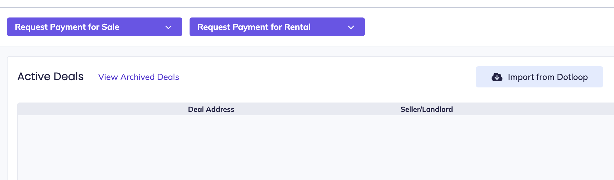 Once the account is linked, on the Deals tab, you will see a button to Import From Dotloop.