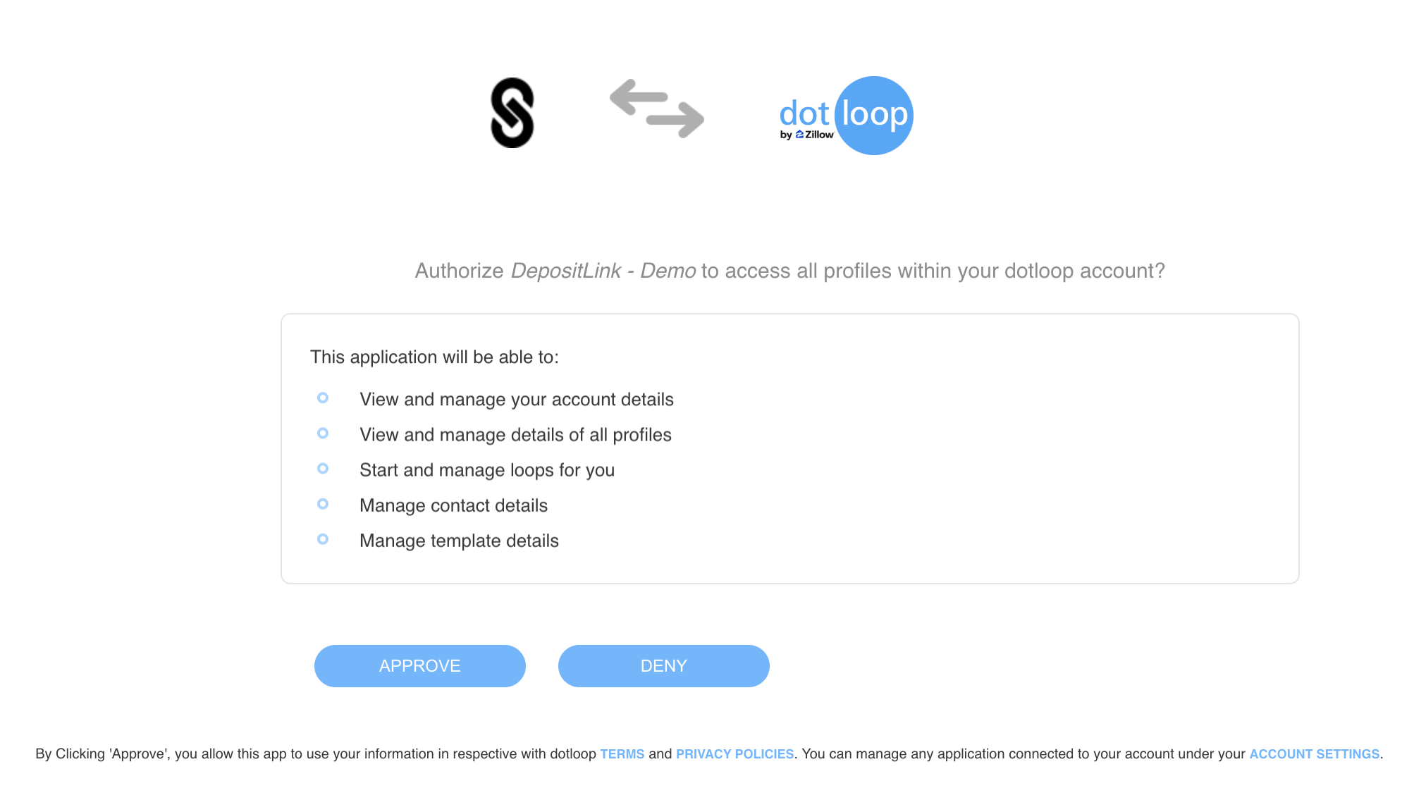 Step 2: Approve the DepositLink connection